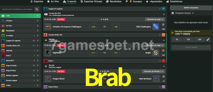 O Brab oferece uma grande seleção de opções de apostas em e-sports com probabilidades competitivas